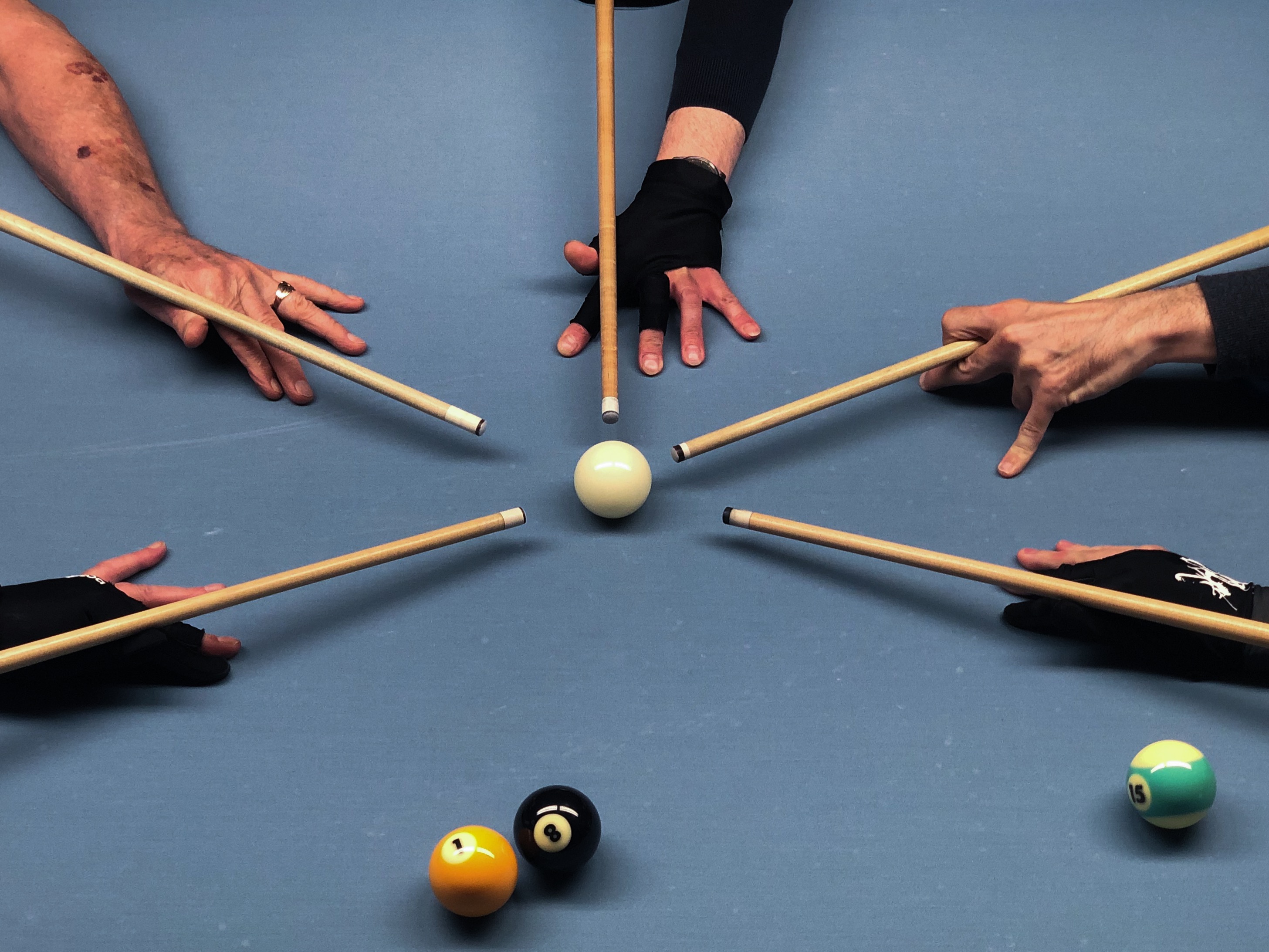 Hver mandag inviterer vi til turnering i pool (biljard) med handicap.